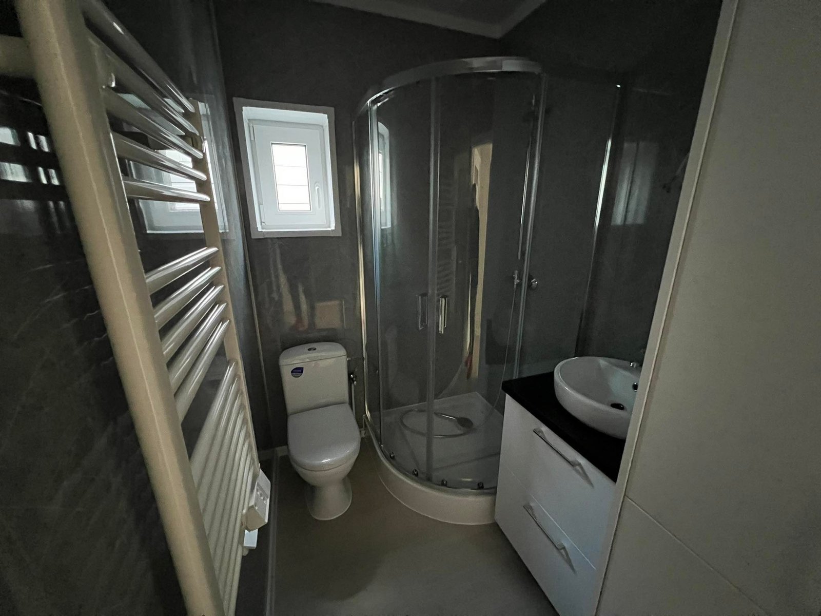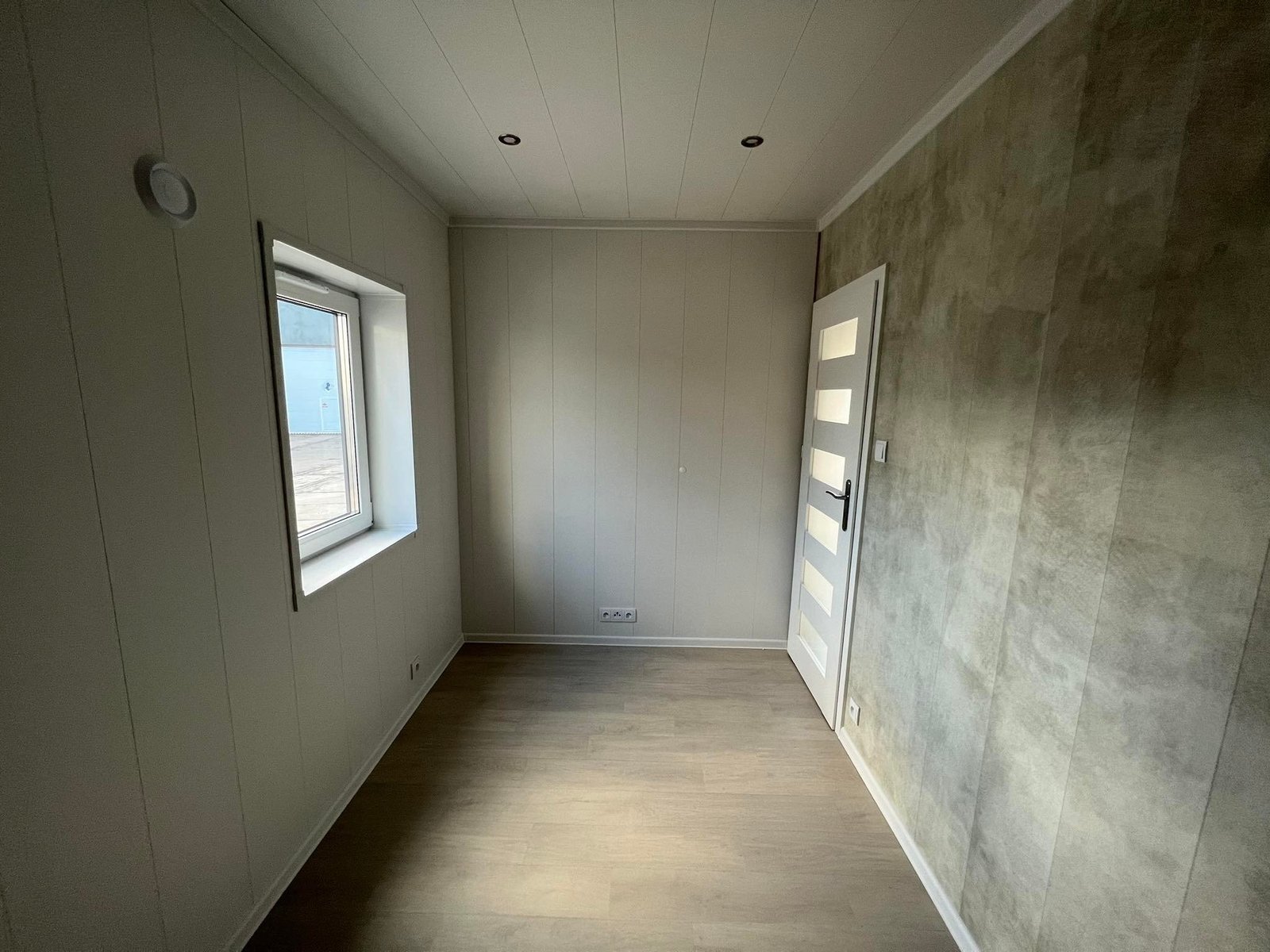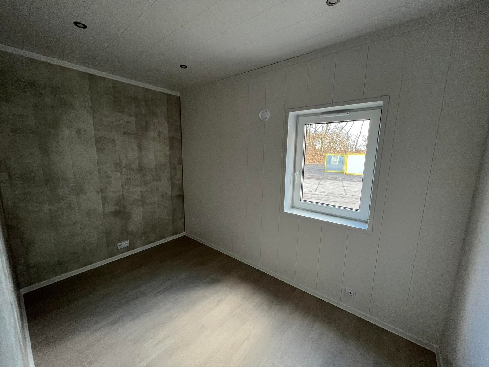 Il comfort è garantito da tre fattori chiave: l’isolamento “Extra Forte” da 20 cm su tutta la struttura, l’installazione di finestre in PVC con triplo vetro per un isolamento acustico e termico assoluto, e un’altezza interna di 2,60 metri che elimina la sensazione di oppressione tipica delle case mobili standard. Gli interni, caratterizzati da pareti effetto cemento e mobili bianchi minimal, offrono uno stile moderno e pulito.