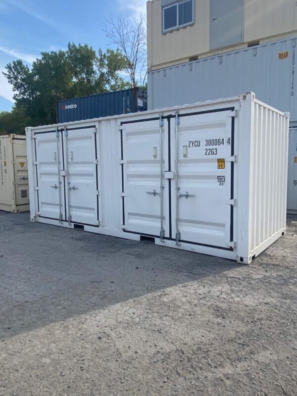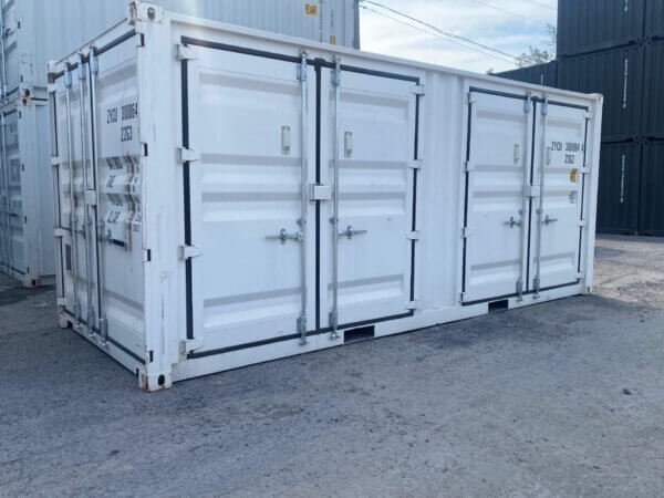 Questa configurazione è ideale per due scopi principali: la logistica efficiente (per caricare merci più lunghe della porta standard o pallet ingombranti lateralmente) e il settore eventi/retail, dove il container diventa un modulo espositivo sicuro e richiudibile. La struttura rinforzata in Acciaio CORTEN assicura stabilità anche a porte aperte.