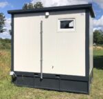 La soluzione sanitaria completa e indipendente. Questo container da 3×2 metri si distingue per la presenza di un serbatoio di raccolta acque nere/grigie integrato nel basamento, rendendolo ideale per aree prive di fognatura immediata.