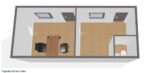 La qualità costruttiva è ai massimi livelli: il telaio del pavimento in profili d’acciaio 60x60x3 mm garantisce rigidità strutturale, mentre la coibentazione in pannelli sandwich da 10 cm (polistirene) assicura una trasmittanza termica di soli 0,38 W/m²K, mantenendo l’ambiente caldo d’inverno e fresco d’estate. Le finiture interne, come le porte Hörmann e l’illuminazione LED, conferiscono durabilità e risparmio energetico.