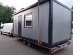 Il modulo è autoportante e richiede solo una superficie piana e stabile (plinti o asfalto). Il tetto a leggera pendenza assicura il corretto deflusso dell’acqua piovana.