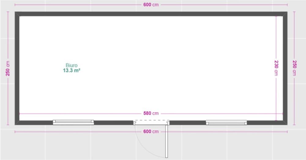- Dimensioni Esterne: 6.000 mm (L) x 2.500 mm (P) x 2.500 mm (A) [15 m²].