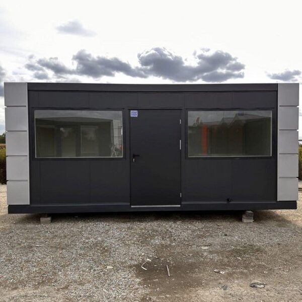 La qualità costruttiva è elevata: struttura in acciaio zincato e isolamento in lana minerale pressata da 100 mm garantiscono durata e comfort termico in ogni stagione. La sicurezza è al primo posto grazie alle 6 tapparelle manuali e alla porta avvolgibile incluse. L’interno è rifinito con pavimento in PVC effetto legno rinforzato (carico 200 kg/m²) e controsoffitto estetico, pronto per accogliere clienti o dipendenti.