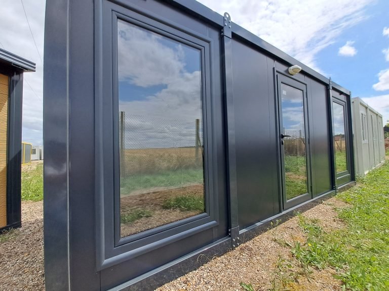 Modulo Prefabbricato 15mq “Design” (6×2,5m) – Ufficio Vetrato Antracite (Coibentato)