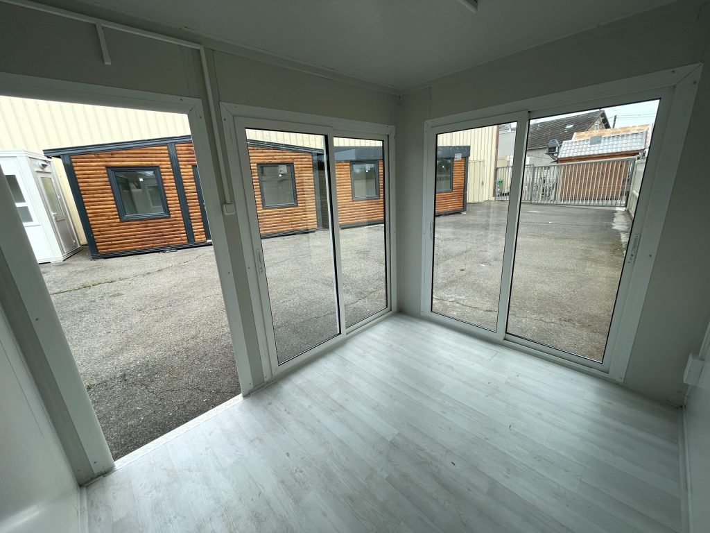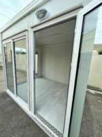 Il Modulo Prefabbricato di 7 m² senza sanitari di Brusato Container è una struttura versatile e moderna. Grazie al design ampiamente vetrato, elimina la sensazione di chiusura tipica dei piccoli box, creando un ambiente di lavoro luminoso e accogliente.