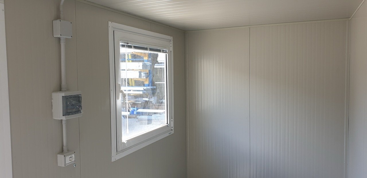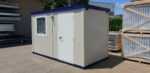 Realizzato con Pannelli Sandwich coibentati in poliuretano (40mm) e dotato di serramenti in alluminio con doppi vetri e tapparella veneziana. Include impianto elettrico certificato e pavimentazione in PVC lavabile. Perfetto per uffici di cantiere, box guardiola o estensioni aziendali.