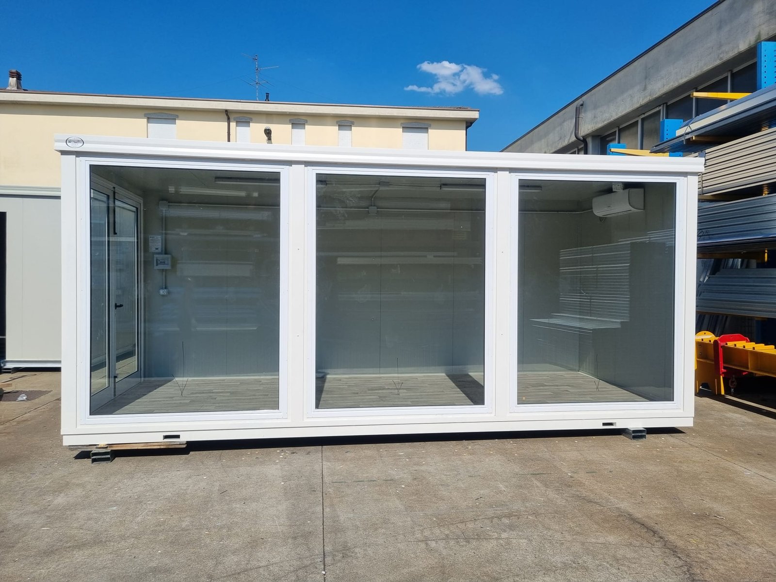 Monoblocco Ufficio “Showroom” Vetrato (6×2,5m) – Con Clima Hisense e Vetri Antisfondamento